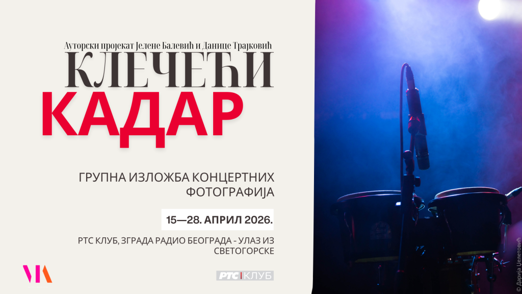 Отварање изложбе концертних фотографија „Kлечећи кадар“, у оквиру ауторског пројекта Јелене Балевић и Данице Трајковић, је данас, у среду, 15. априла у 18.00 часова у РТС Клубу (зграда Радио Београда, улаз из Светогорске). Концертна фотографија бележи и документује спектакл живог наступа, истовремено играјући кључну улогу у обликовању визуелног идентитета извођача и представљању музичке сцене.