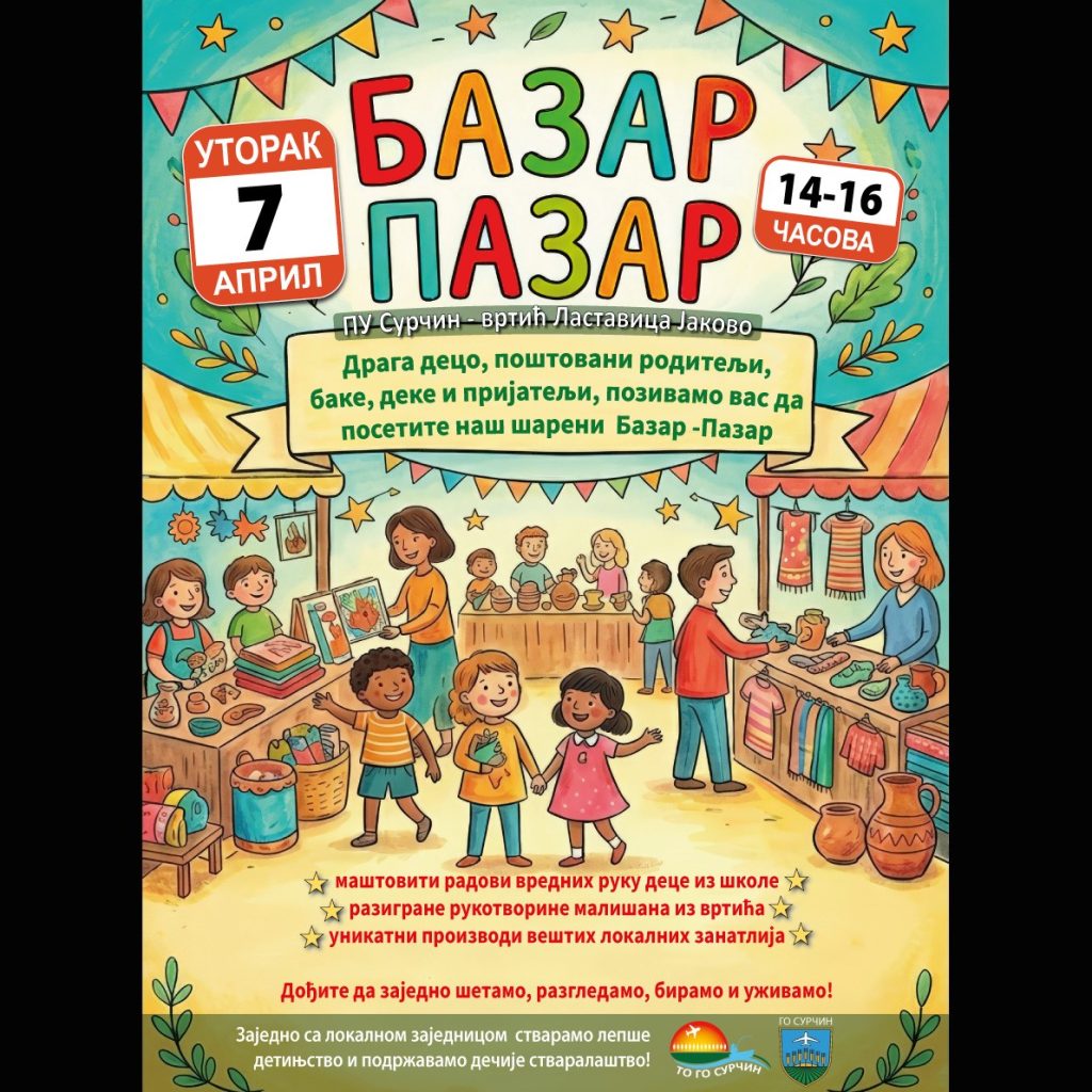 Tог дана на базару ће се показати, али и продавати радови деце ПУ Сурчин, па базар носи сиболичан назив „Базар-пазар“.
