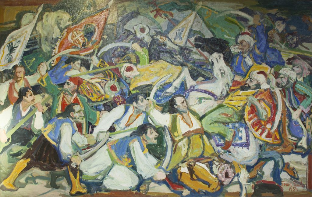 У оквиру изложбе публика ће први пут моћи да види два, до сад готово непозната дела. Прво је недавно откупљена потресна композиција Милоша Голубовића, сложене симболике и снажне антиратне поруке, која обогаћује иконографију и перцепцију ратног искуства у српској међуратној уметности. Друга је монументално платно „Бој на Чегру” Боже Илића, које нам показује овог мајстора соцреализма у потпуно другачијем и неочекиваном светлу. Необична је судбина ове, готово апстрактне слике, која је након првог излагања 1954, због своје модернистичке естетике била скинута с рама и као неподобна склоњена у депо, да би тек након захтевне рестаурације и конзервације, коју је Музеј предузео протекле године, могла најзад да буде изложена пред публиком.