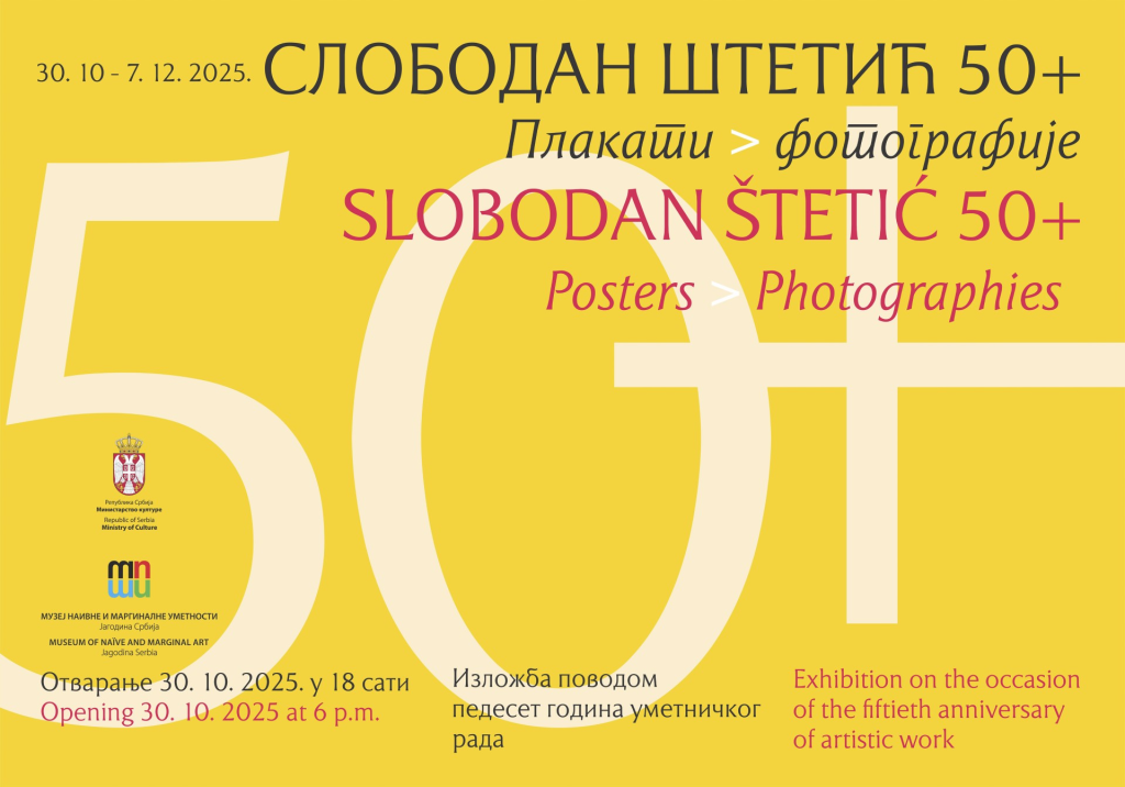 Обележавајући педесет година стваралачког рада вишеструко награђиваног графичког дизајнера и професора Слободана Штетића, Музеј наивне и маргиналне уметности приређује изложбу Слободан Штетић 50+.