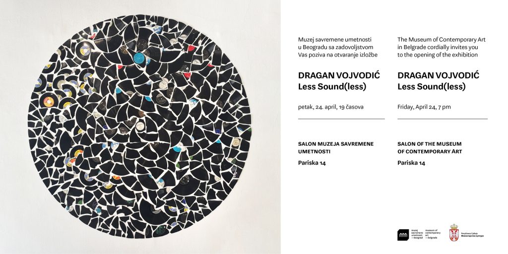 Отварање изложбе „Less Sound(less)” уметника Драгана Војводића, одржава се у петак, 24. априла 2026. године у 19.00 часова, у Салону Музеја савремене уметности.