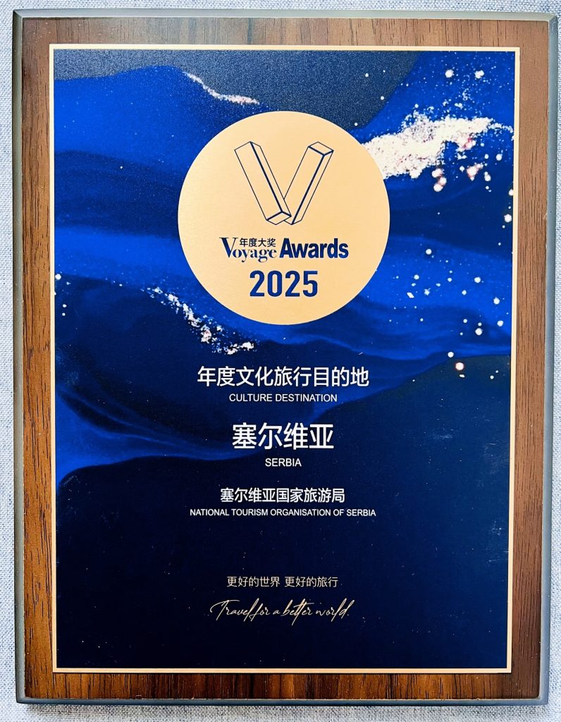 Србија је добитник престижног признања „Culture Destination 2025” у оквиру Voyage Awards 2025, које додељује један од водећих туристичких магазина у Народној Републици Кини – Voyage.